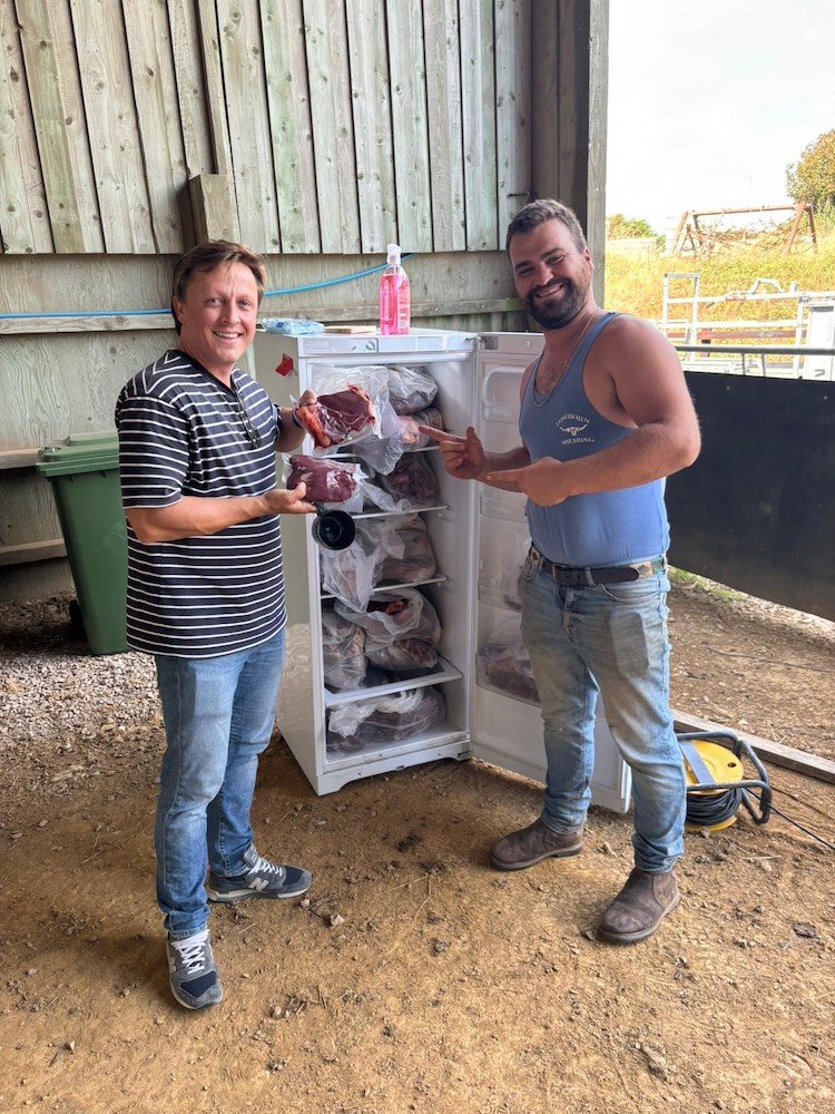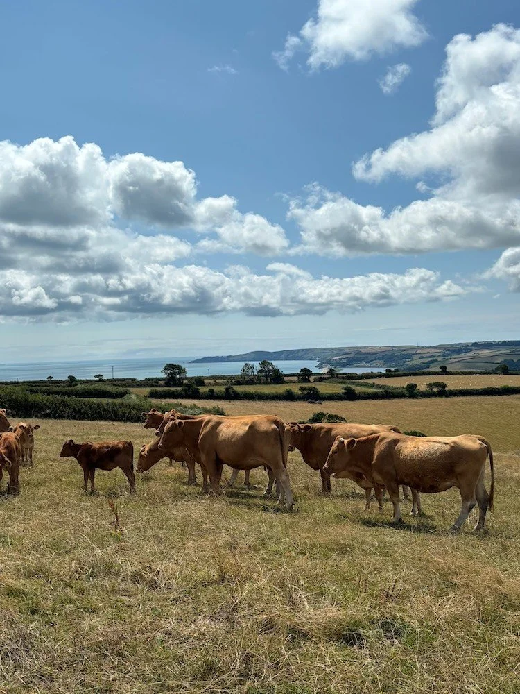We welcomed 44 pedigree South Devon cows and heifers from Malcolm Broome as he retired his much-loved herd, giving us a strong start as we begin raising our own pasture-grazed cattle.